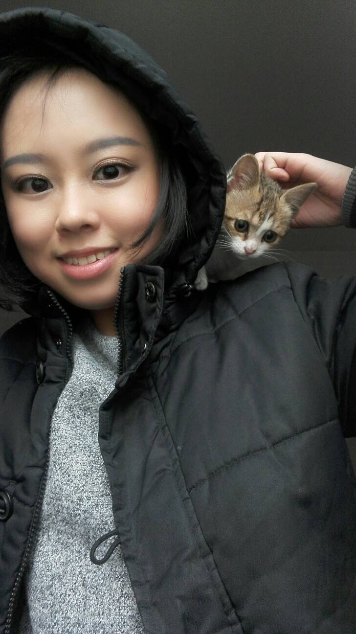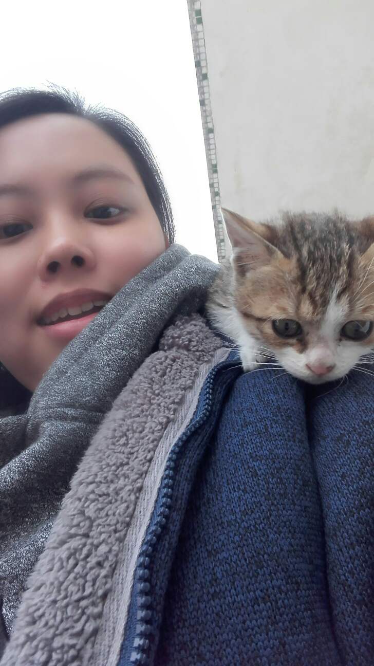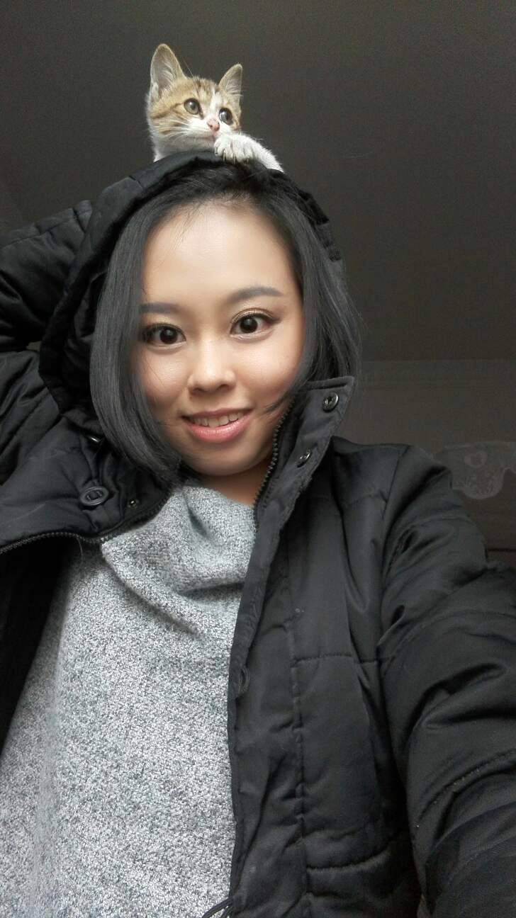 我就是抱抱它、拍拍照、肩膀蹲猫、头上蹲猫,这样子咯~