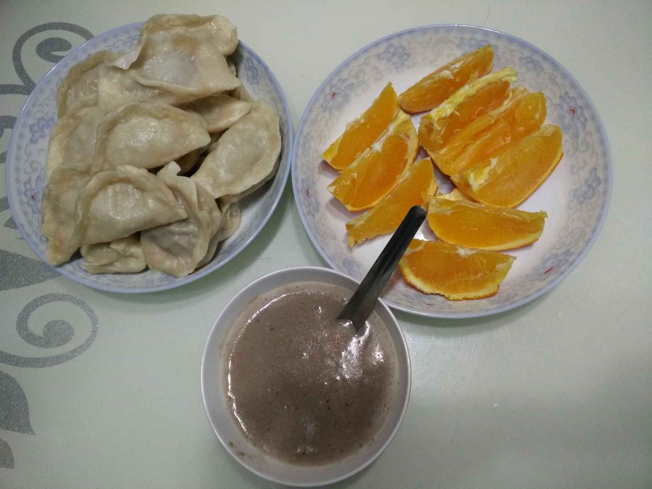 晒一下今天的早餐,饺子,杂粮米糊,橙子