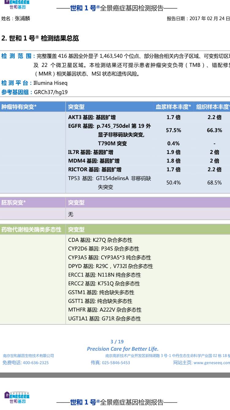 父亲14年4月确诊,肺腺癌晚期并发骨转,易瑞沙服用一年后耐药,培美顺铂化疗四个疗程,也显示耐药,转服9291,过程中连用过易瑞沙和184,大半年后指标回升,改用培美加贝伐两个疗程,显示疾病进展,重新做了基因检测,结果如下: