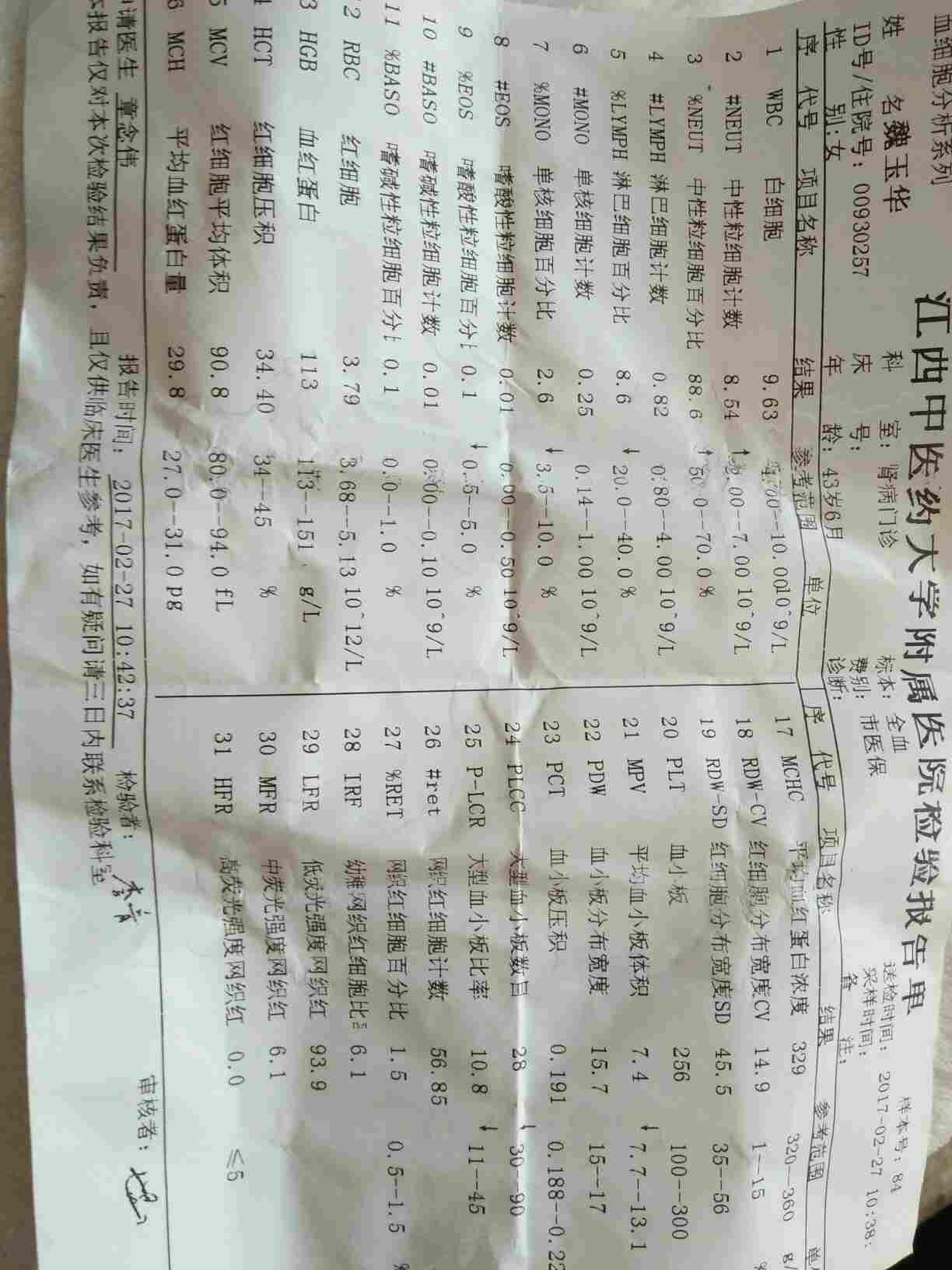 今天去拿药,医生开了个血常规,说是恢复的不错,不贫血了,白细胞也上去了,😊开心一下下