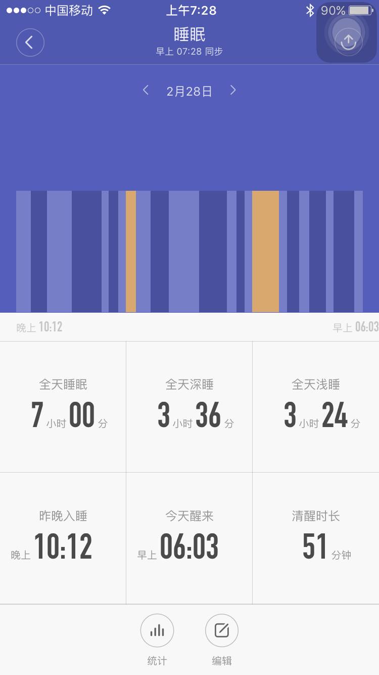 我觉得你比我好多了,我的深睡时间都是在2个小时上下排徊,几乎没上过3小时