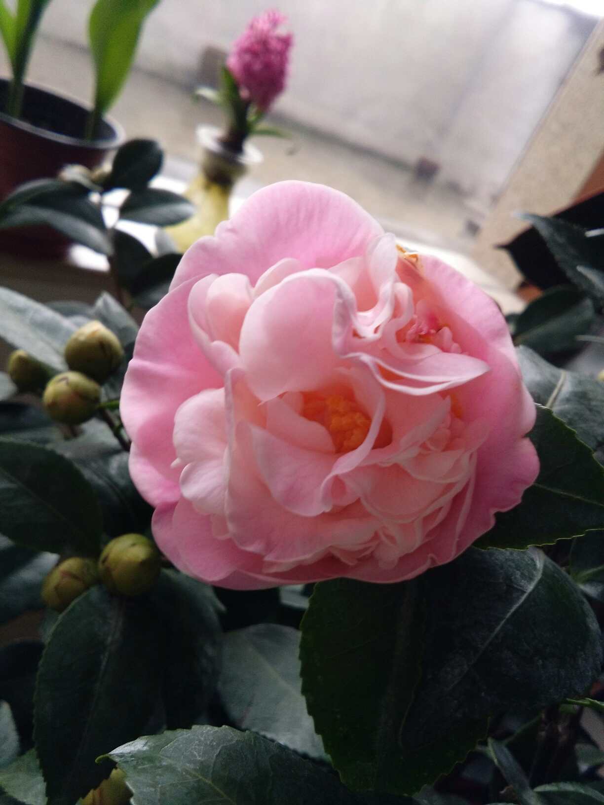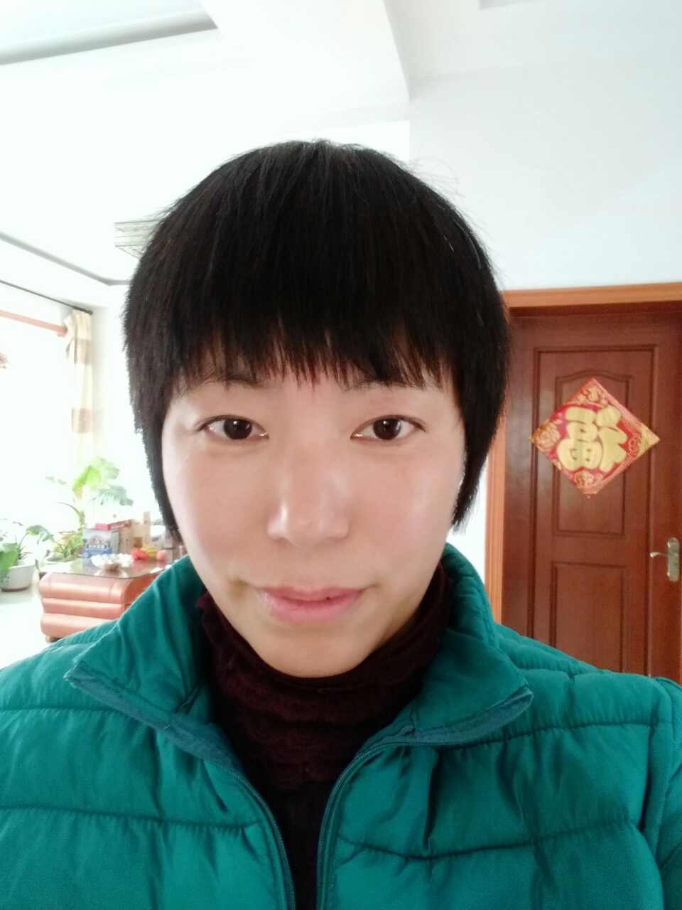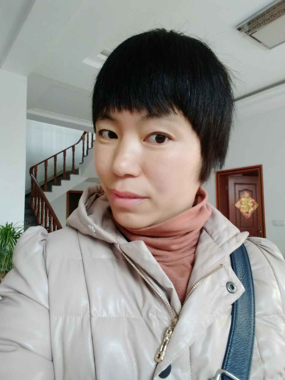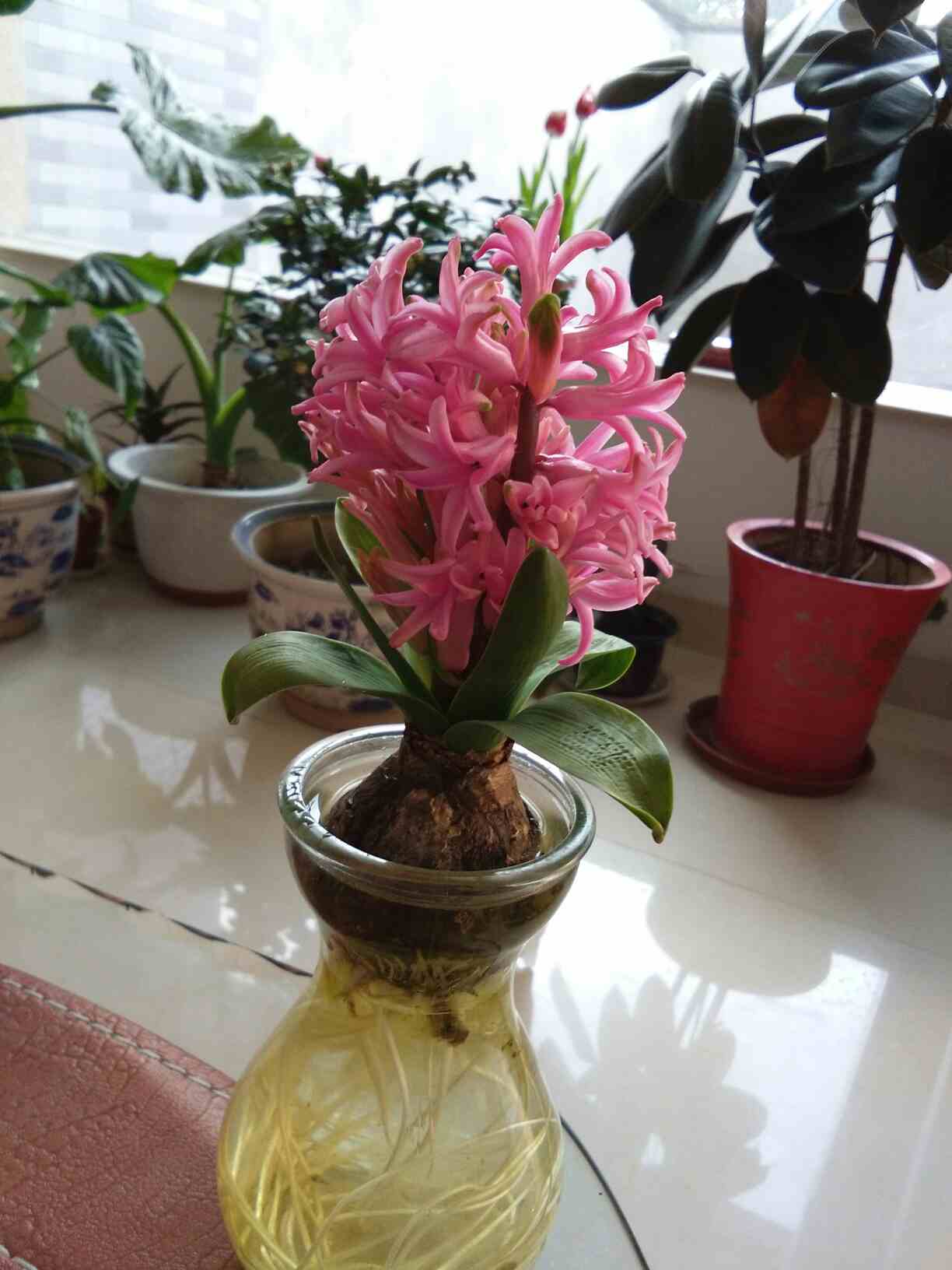 美女气色很好,花儿养的好!