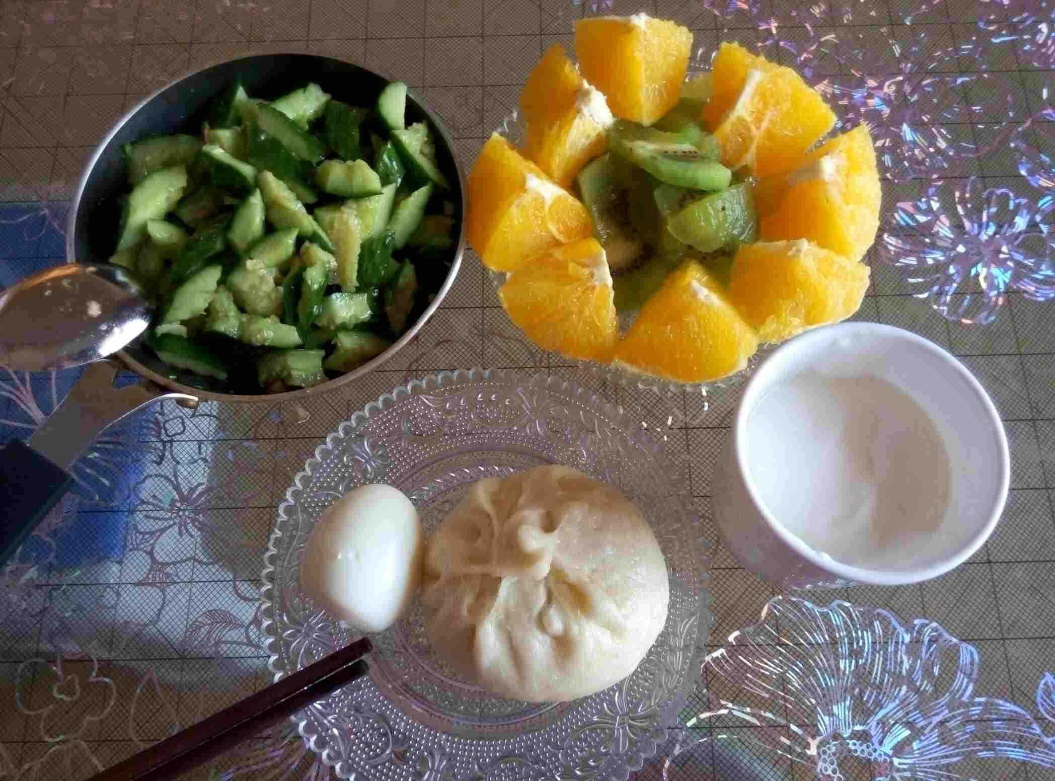 凉拌黄瓜,自家包的包子,都是好吃的啊