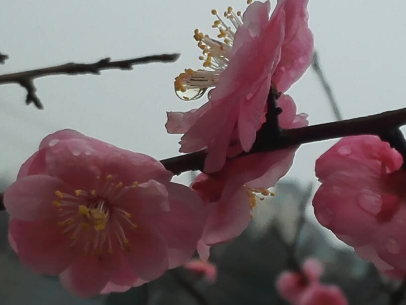 昨夜下了雨,今天的梅园有别样雅致。