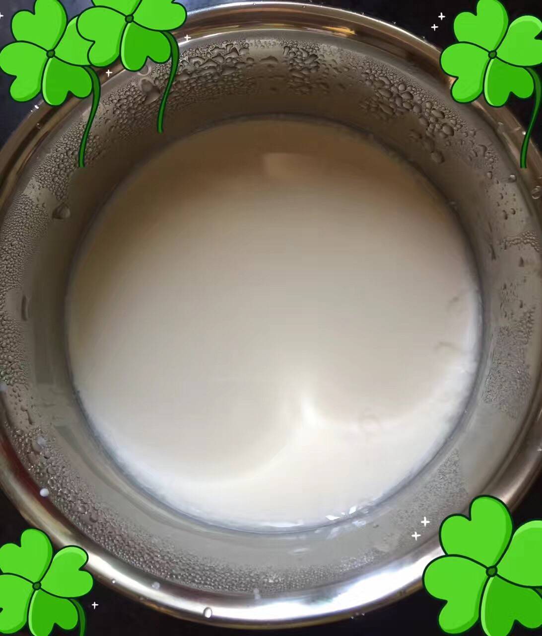 你还需要用一小盒酸奶放进去搅拌做引子,这样八九个小时之后就可以做成功了