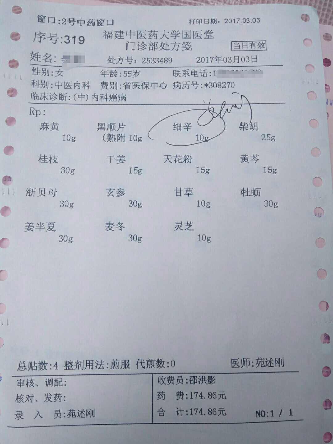 中药治疗,能够增强体质,给癌后机体起调理作用,这种作用,在你们的治疗中发挥的淋漓尽致!