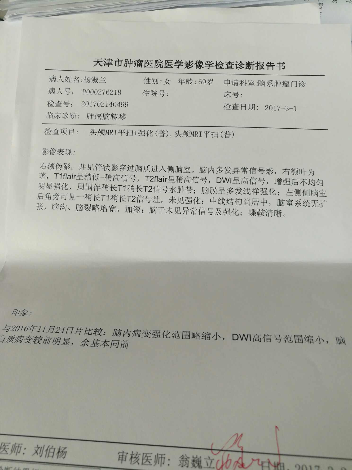 急求,我母亲肺癌脑转,从去年6月份吃易瑞沙到现在每次复查都很好,就是上周的复查结果出来脑核磁说较上次病灶有减少,但是肺ct和上次比没有变化,然后肿瘤标志物全正常,会是耐药吗?每次的结果都是变小了,这次没变,心里好难过啊,怕妈妈病情有进展,今天医生也没在,好着急。求高手支招。