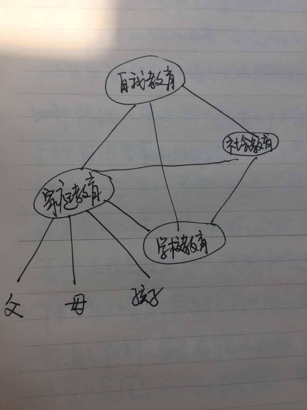 黄老师总结的教育是“四位一体”的,包括家庭教育,社会教育,学校教育,自我教育。他认为前三者是孩子自我教育的“三脚架”,缺一不可。我想家庭教育也应该用“三脚架”支撑起来,就是父亲,母亲,和孩子的自身。真的是缺一不可。