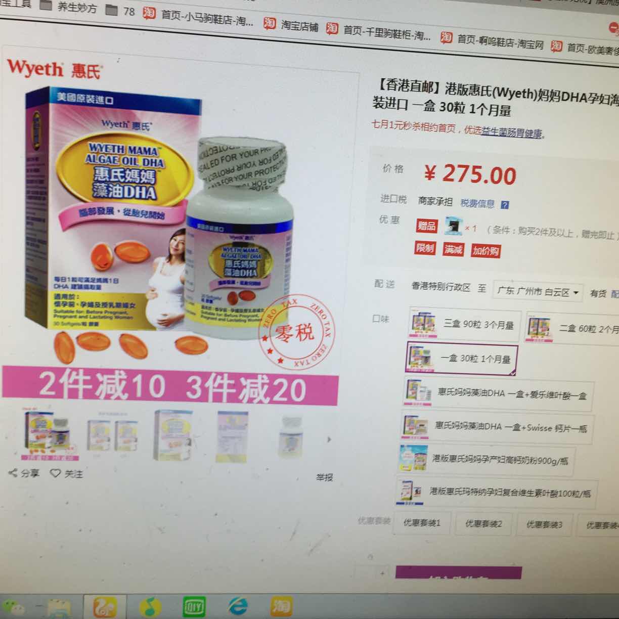 一直想买不知道去哪买,京东全球购不知道可不可靠……看别的有人吃惠氏藻油的多点,截几张图!大家看看价格靠谱么,上面显示香港直邮!感觉价格有点便宜!!不知道行不行