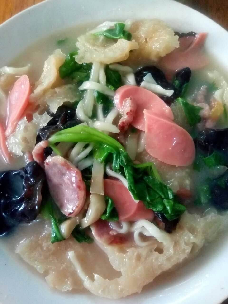 今天的午饭,老妈下的大碗皮肚面,哈哈哈,好吃啊,吃的饱饱的,太好吃了,跟外面的差不多好吃,哈哈哈,开心到飞起,哈哈哈~里面有香肠,火腿肠,木耳,榨菜,青菜,肉丝,西红柿,好吃啊,大家可以试试!