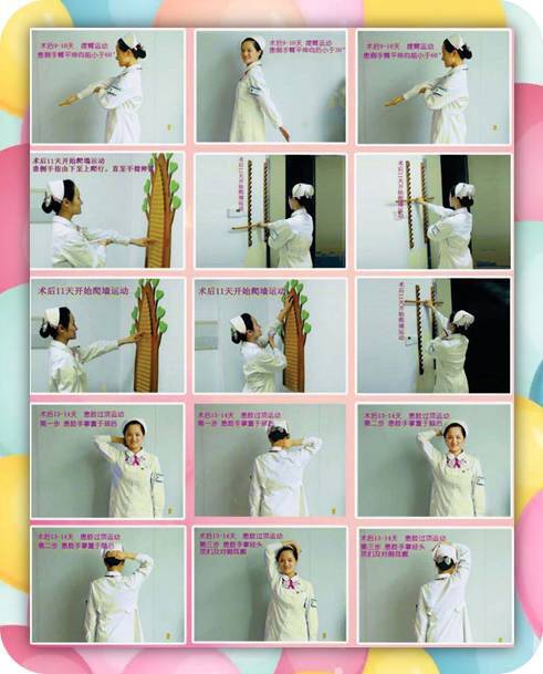 遵循循序渐进的锻炼原理,通过手臂运动,肌肉收缩,促进血液和淋巴液回流,防止淋巴水肿,促进伤口愈合。