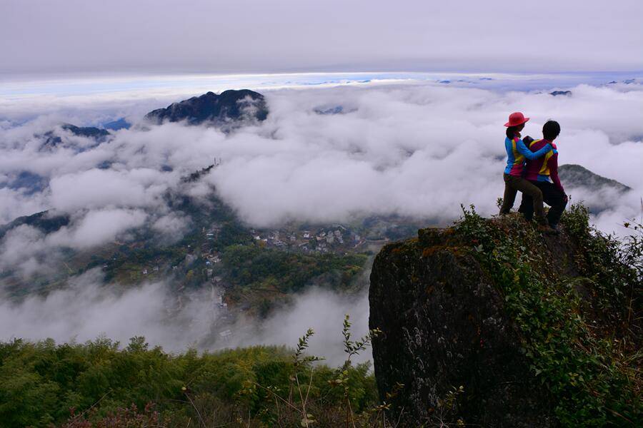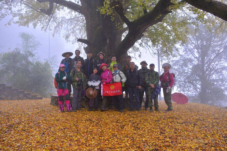 七点半到指定地点集中,同一包车前往塔前菖上,毛毛细雨中欣赏600年银杏老树,踏着满地黄金甲上山,一路上钻草丛、摘野果,不知不觉已到金鸡山顶,只听到前面驴友惊呼雀跃……