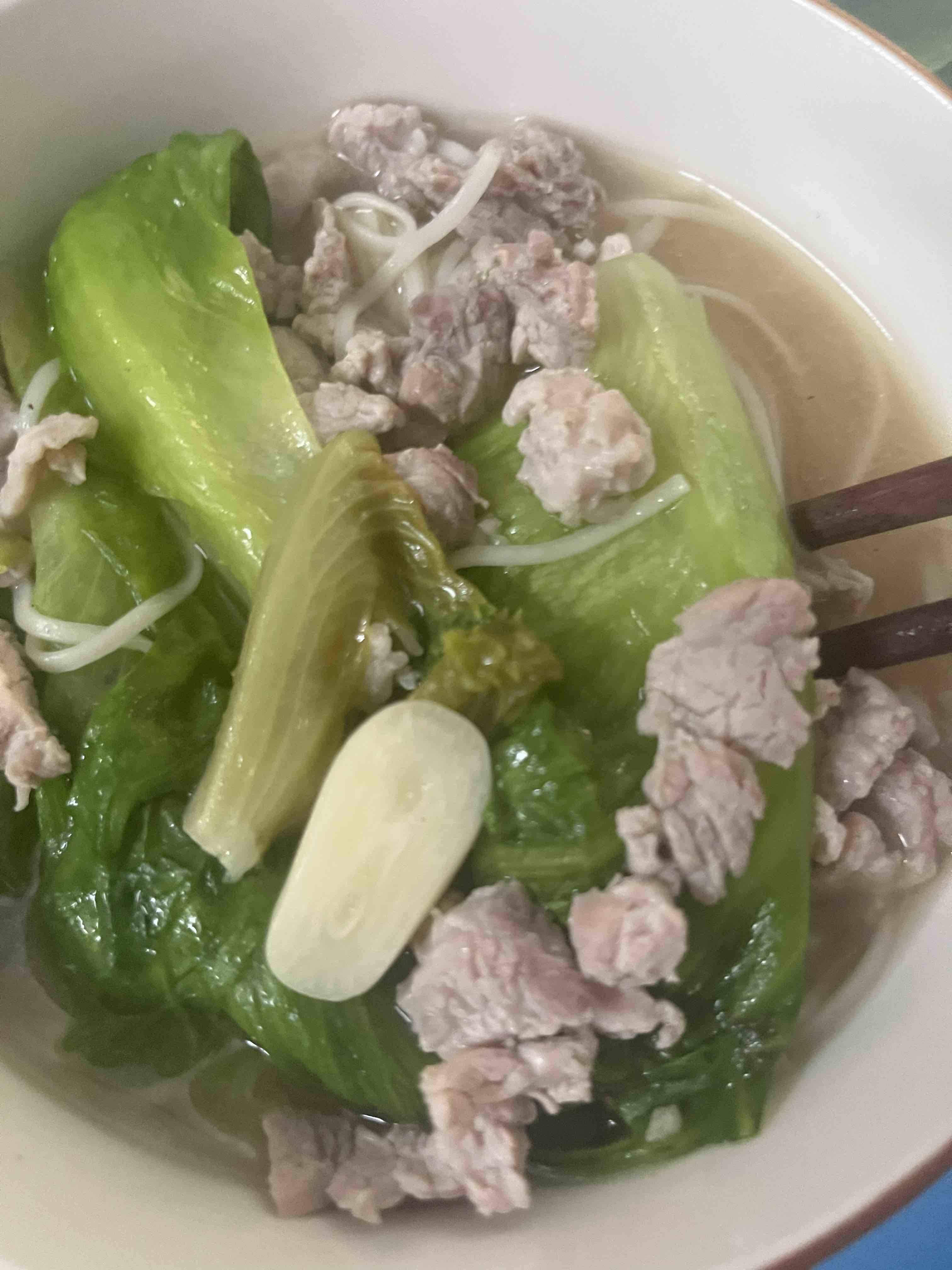 你这不也挺丰盛的吗 有菜有肉 又有面,