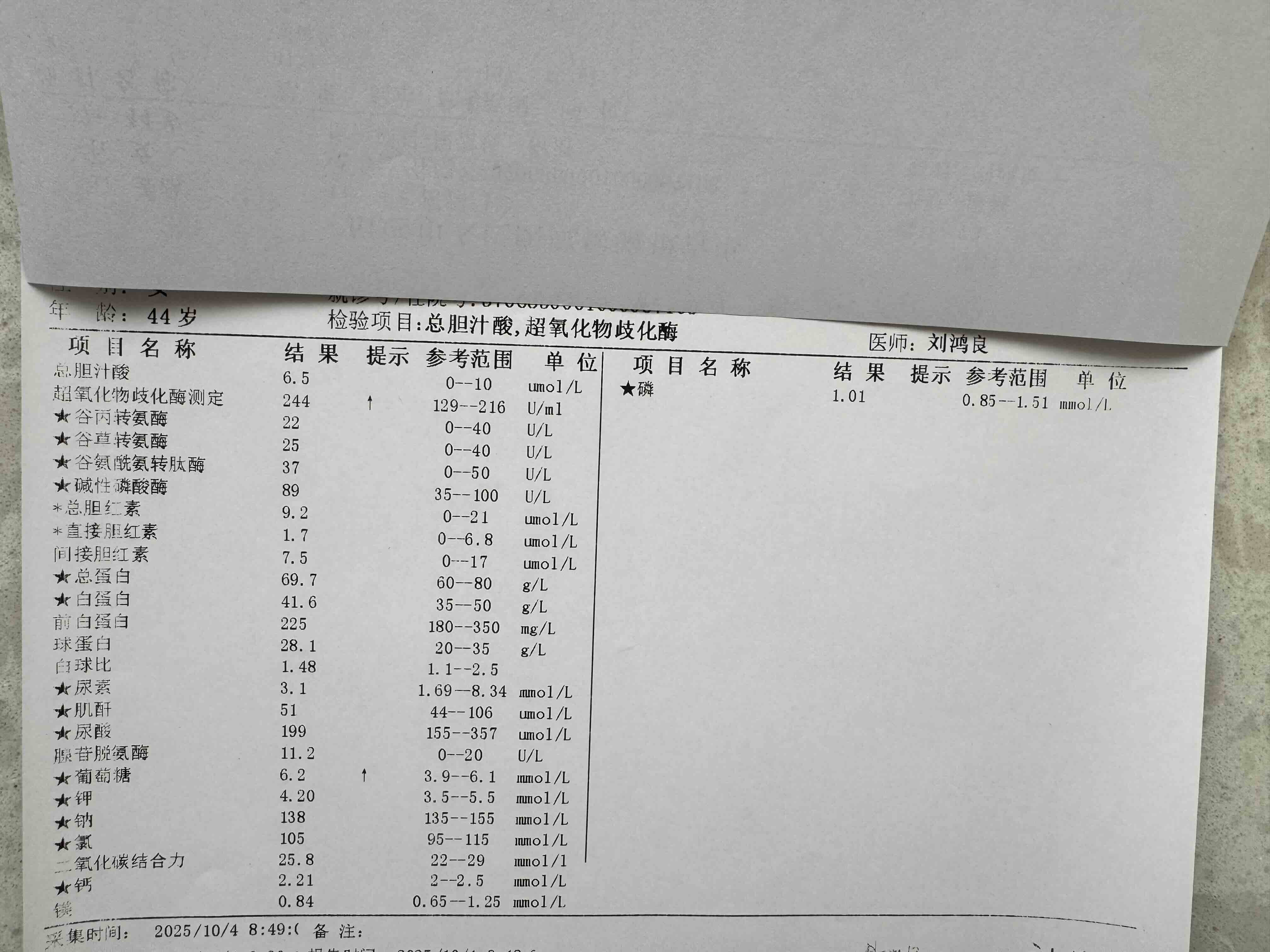 10月4日在当地复查,结果出乎意料,很多以前正常的指标这次都不正常了。
