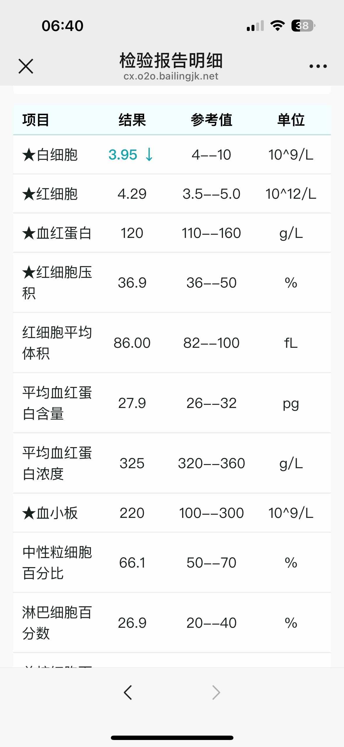 白细胞仅住院时异常,这几年一直都很稳定,结果这次低了