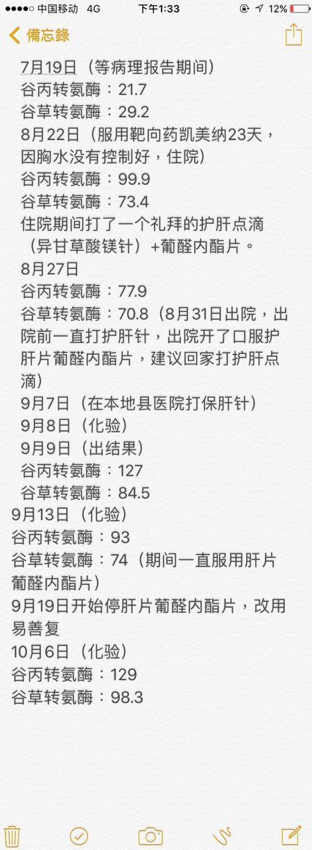 陈波医生弱弱地说一句,还好不是ALK对应的克唑替尼的肝损,这个同代的没别的,更新换代又太贵。如果是一代耐药的话,现在用的是埃克替尼,我建议换吉非替尼。毕竟国产跟进口还是有点区别的。
