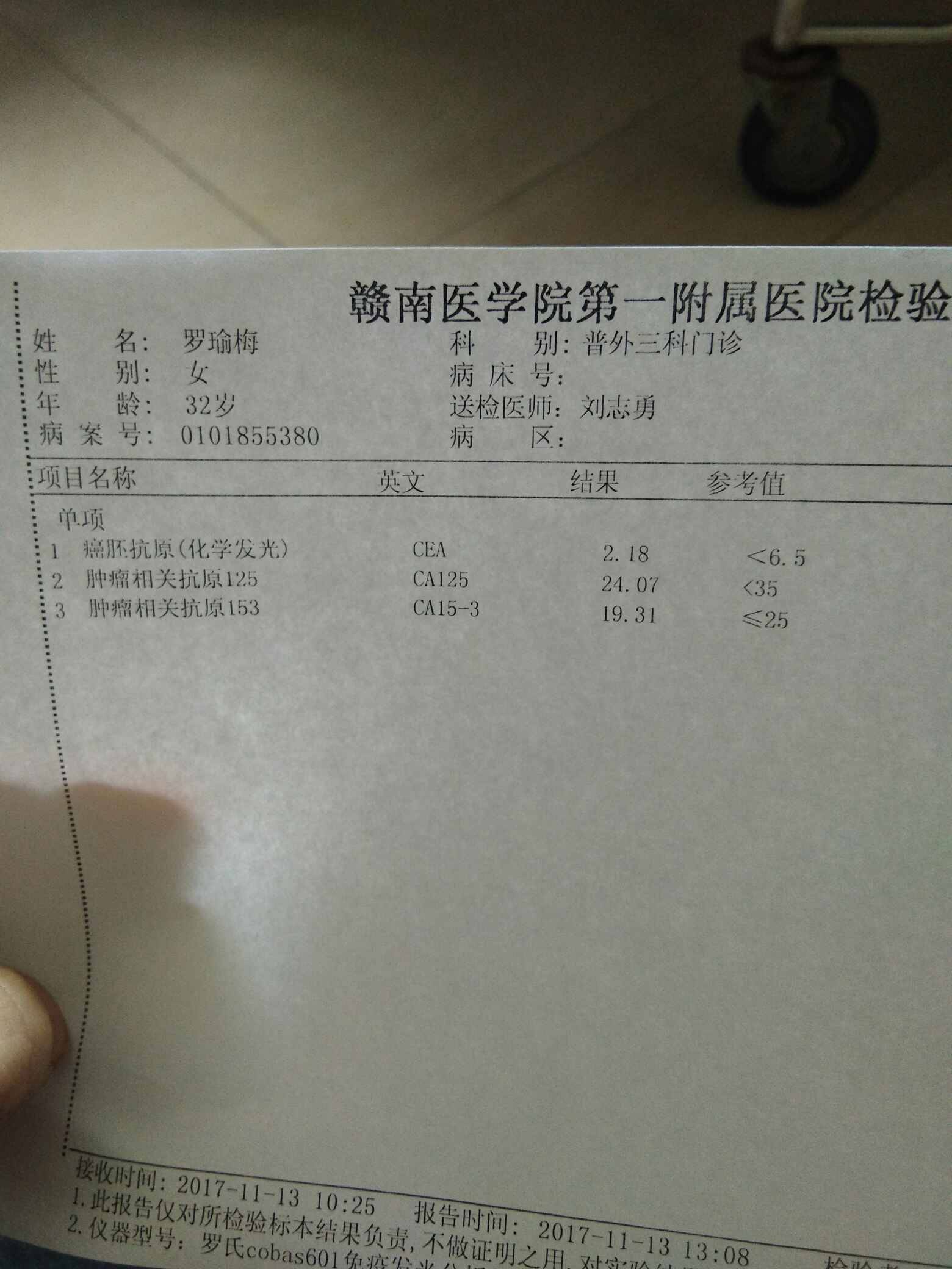 糖类抗原测定CA72-4为29.44,胃癌术后半年
