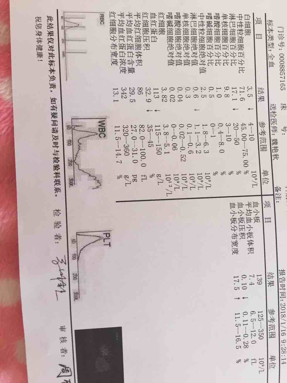 千千千千千雅我滴妈呀。血沉高好几倍了。血常规有点贫血,尿常规白细胞有炎症尿路感染吧。