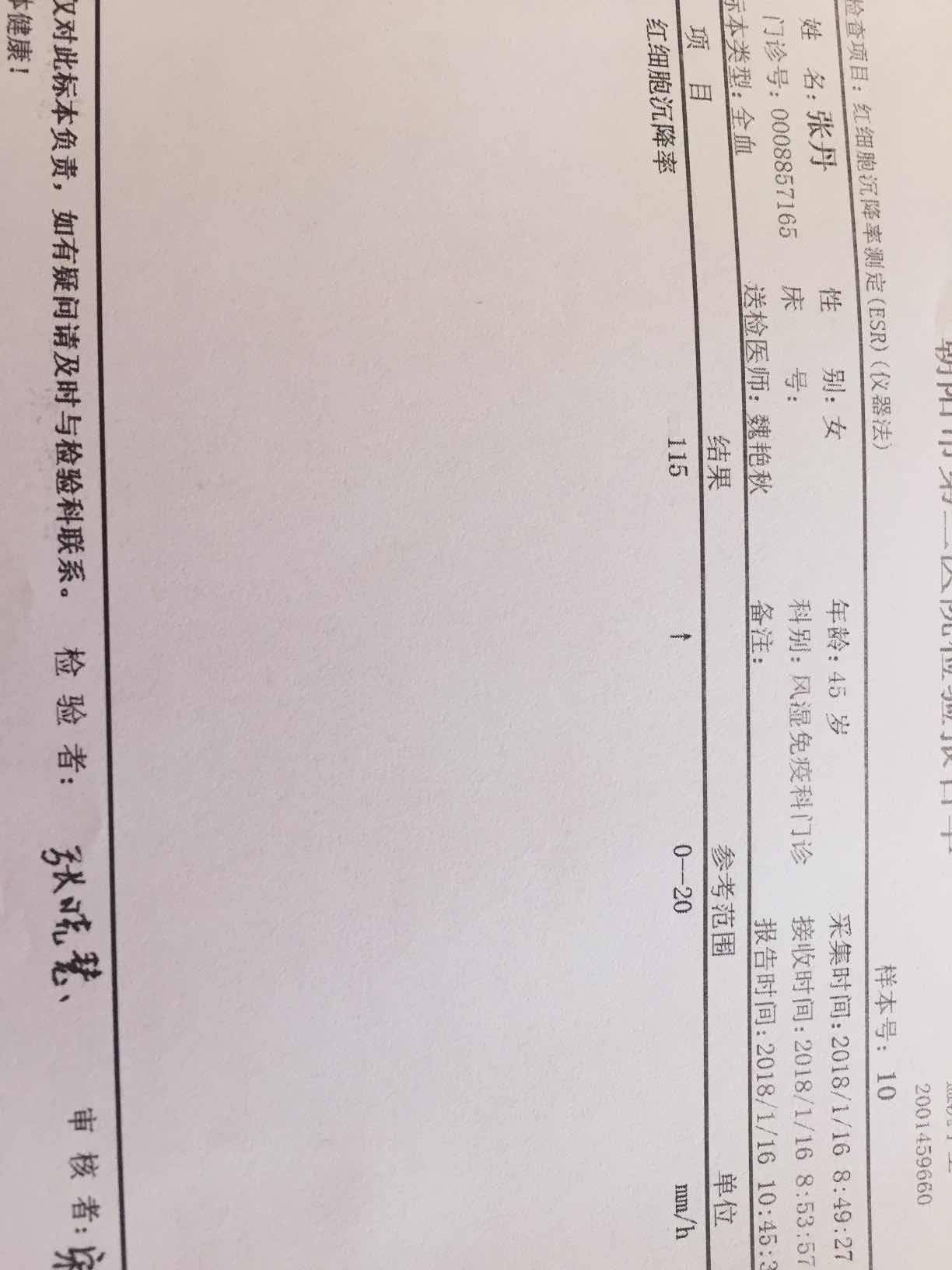 血沉太高了其他还好,骨头不疼么?我血沉一块就发烧骨头疼的要命