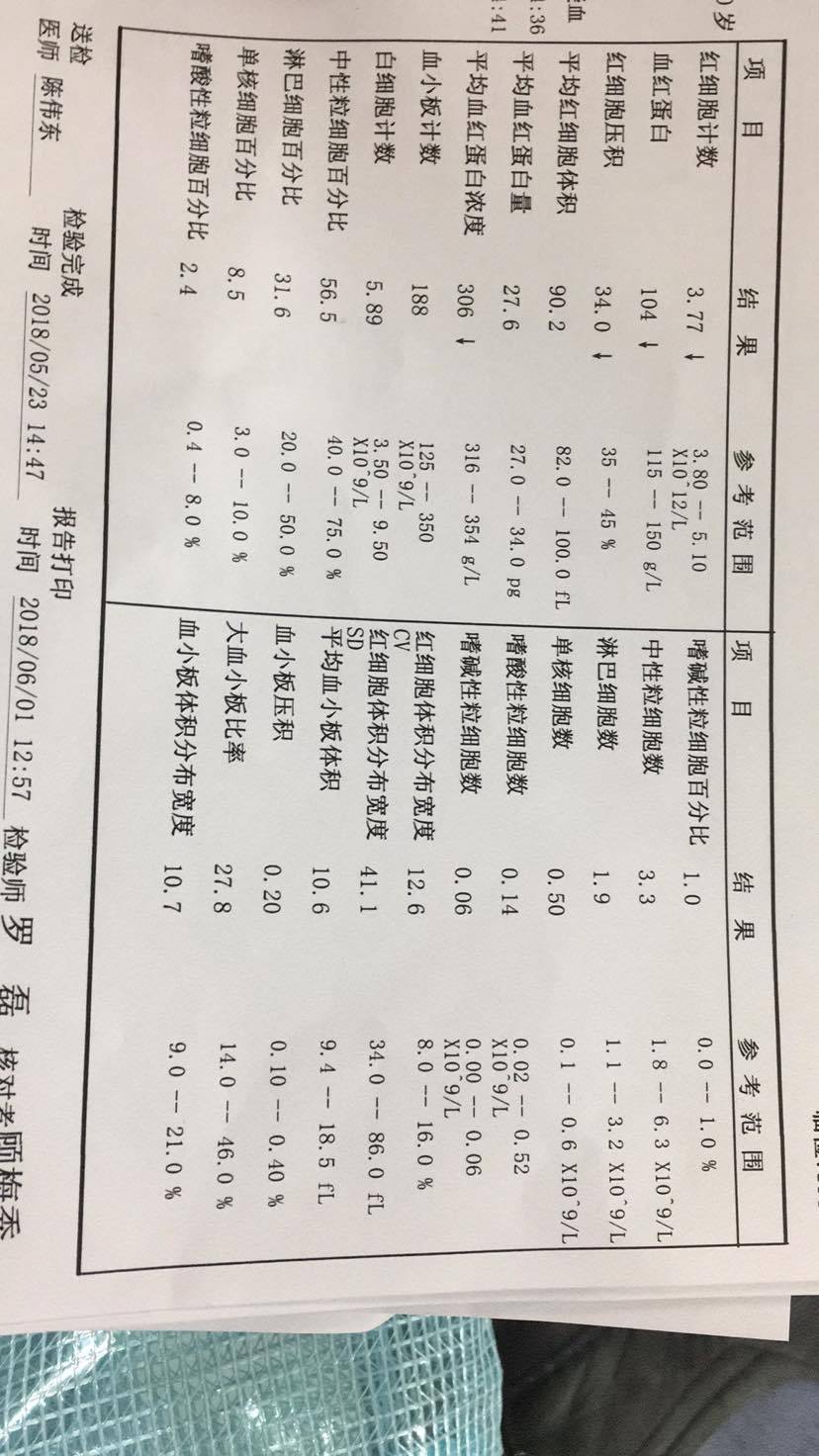 我妈胃全切快3年,术后贫血,经调理,现已完全正常,加油