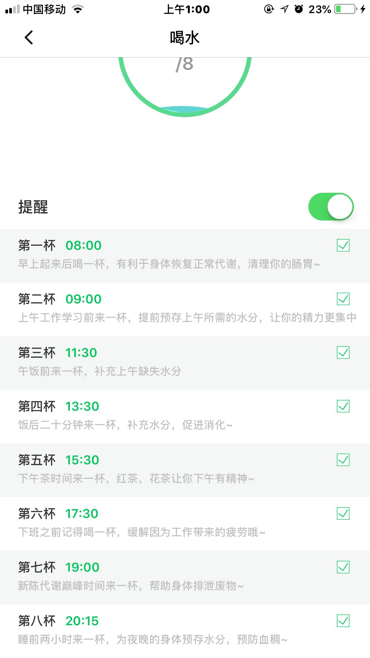 再找到喝水,点进去设置就好了!