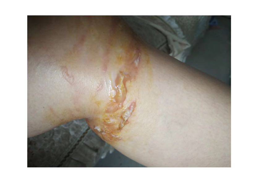 看着挺恐怖的,我都不敢自己处理,你这是因为烧伤引起的