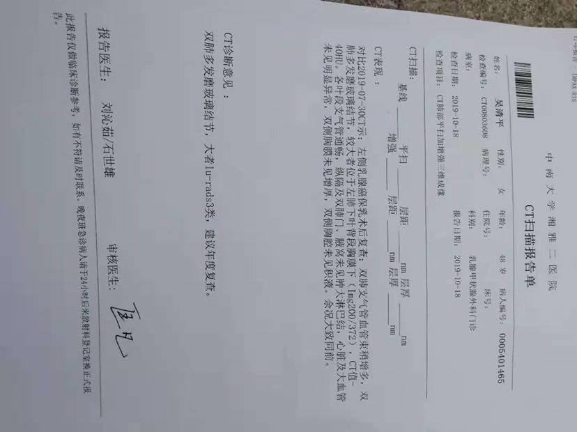 我也是左乳癌术后左肺下叶磨玻璃结节,纠结呢