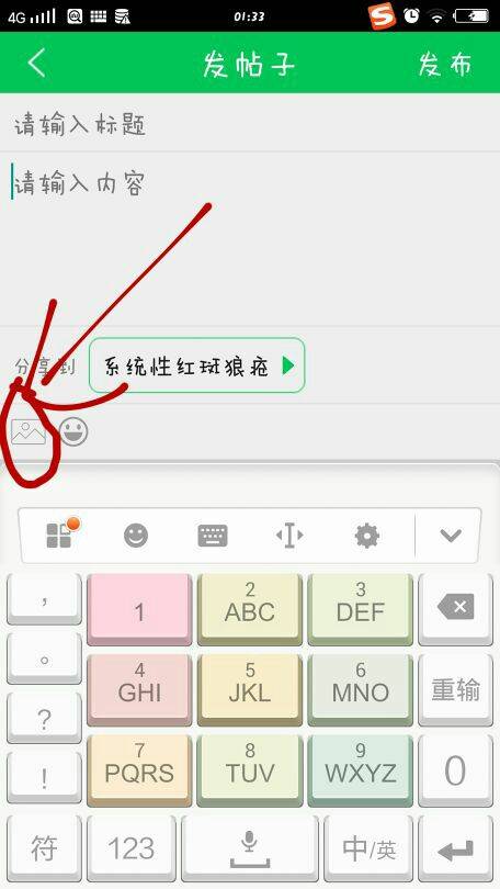 添加✘图片的图标✘一般都在✘表情图✘标的旁边