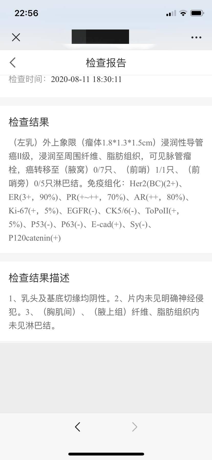 8月5日上午妈妈第一台手术,11点多出复苏室回到病房。医生说手术很成功,但是在手术中发现有前哨淋巴结转移的情况,做了腋窝淋巴结清扫。手术后下午开始不知道是不是妈妈对麻药有反应还是怎么了恶心头晕,这样的状况持续了两天。好在第三天好了,第五天我们一起听了护士长上课讲术后恢复以及如何预防淋巴结肿大的问题,两个引流袋,胸部那个出院就可以拨掉,腋下那个引流袋要出院带回家,等变成淡黄色液体小于15毫升可以去医院找医生拔掉。8月11日妈妈的手术大病理出来了,her2要去再做个fish检测。是不是淋巴结有转移就必须要做化疗了?有点担心妈妈的体质会不会反应比较大。妈妈有点贫血这几天在家给她煮五红汤💪希望她好好恢复等待进一步治疗。