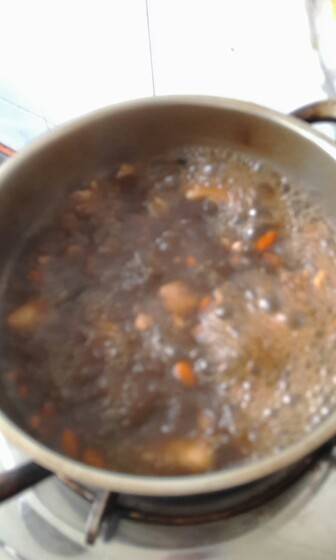 先放药材下去煲,后下鸡肉同时煲半小时左右,因为龟板胶难以融化,所以需要时间去熬下。