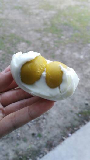 你是不是偷偷减小强,喂小鸡吃了!双黄蛋是小强惹的祸。以前买过全是双黄的蛋!