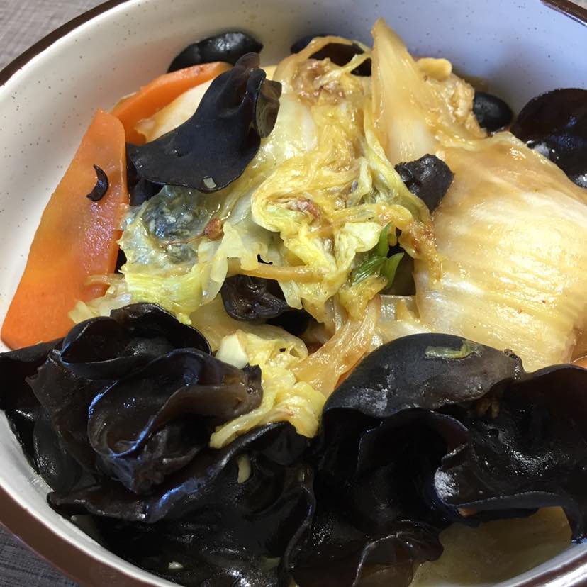 白菜黑木耳炒胡萝卜🥕这道经典菜从小吃到大,也没感觉腻歪,小的时候在东北家里经常吃,黑木耳是东北的特产,过去基本都是野生的。现在野生的黑木耳那可是难找。