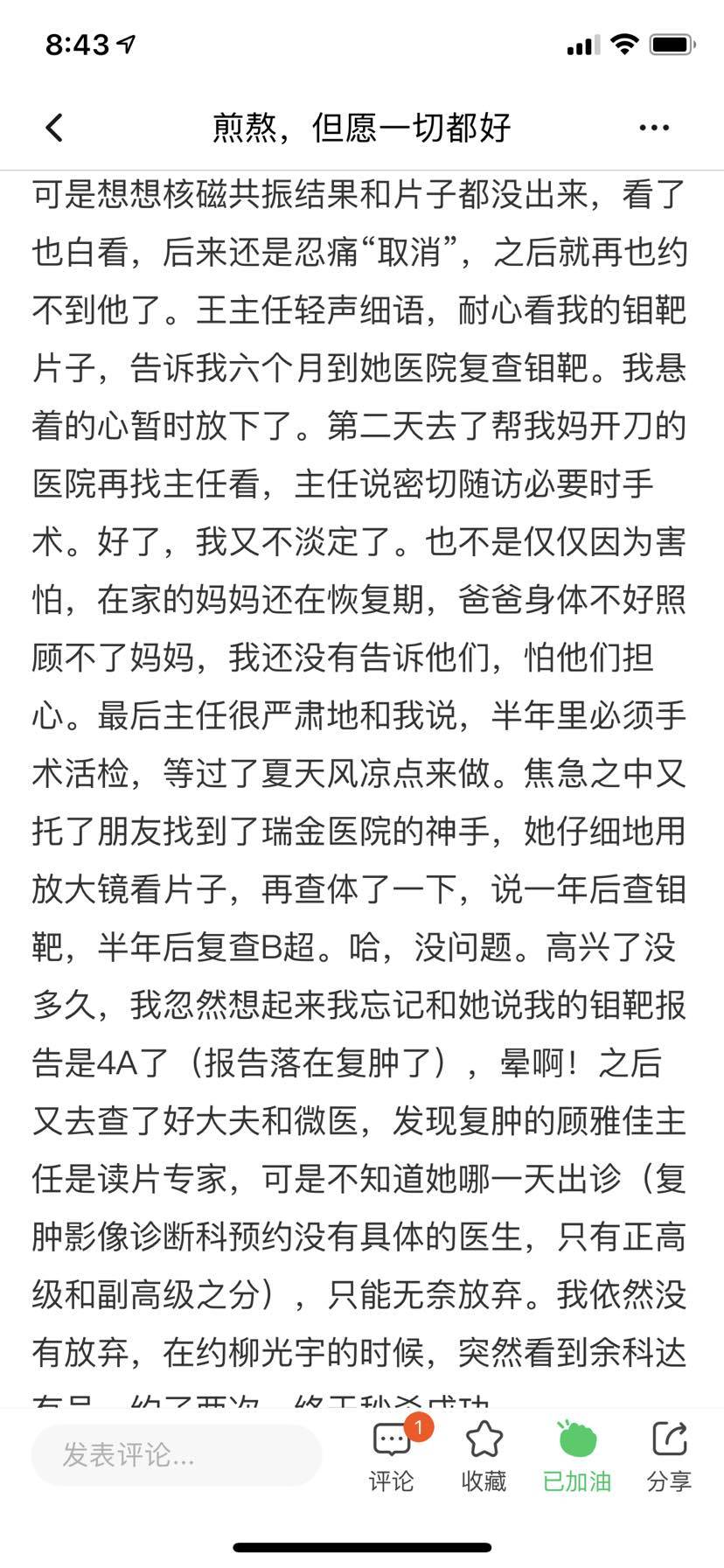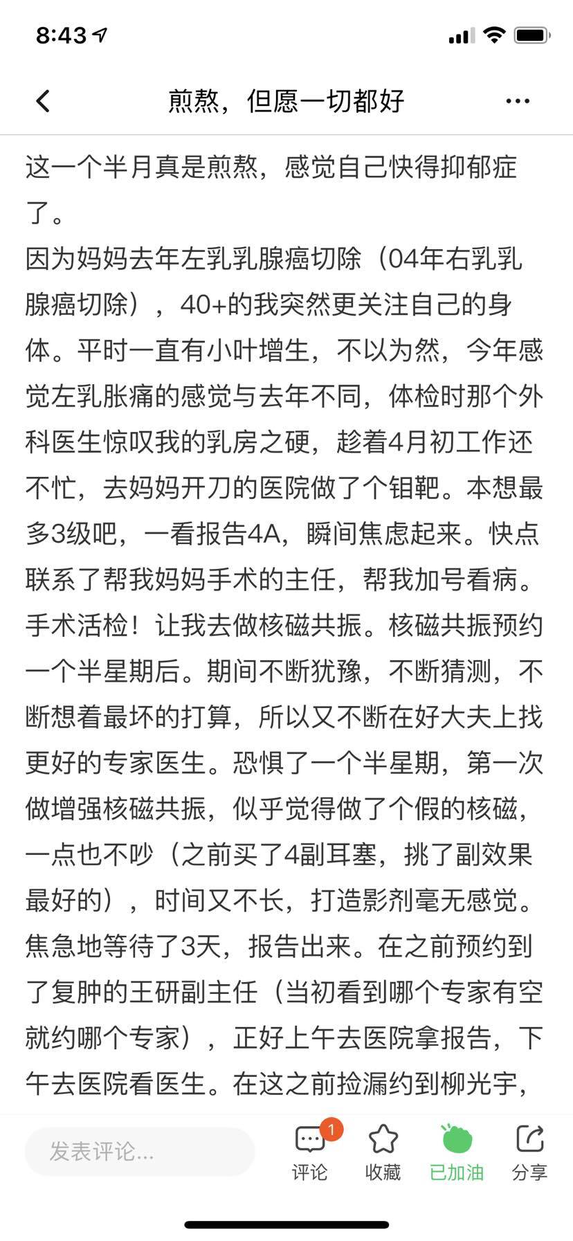 尽早手术,别拖。有家族史尤其要注意,不要抱侥幸心理,应早尽早才是王道