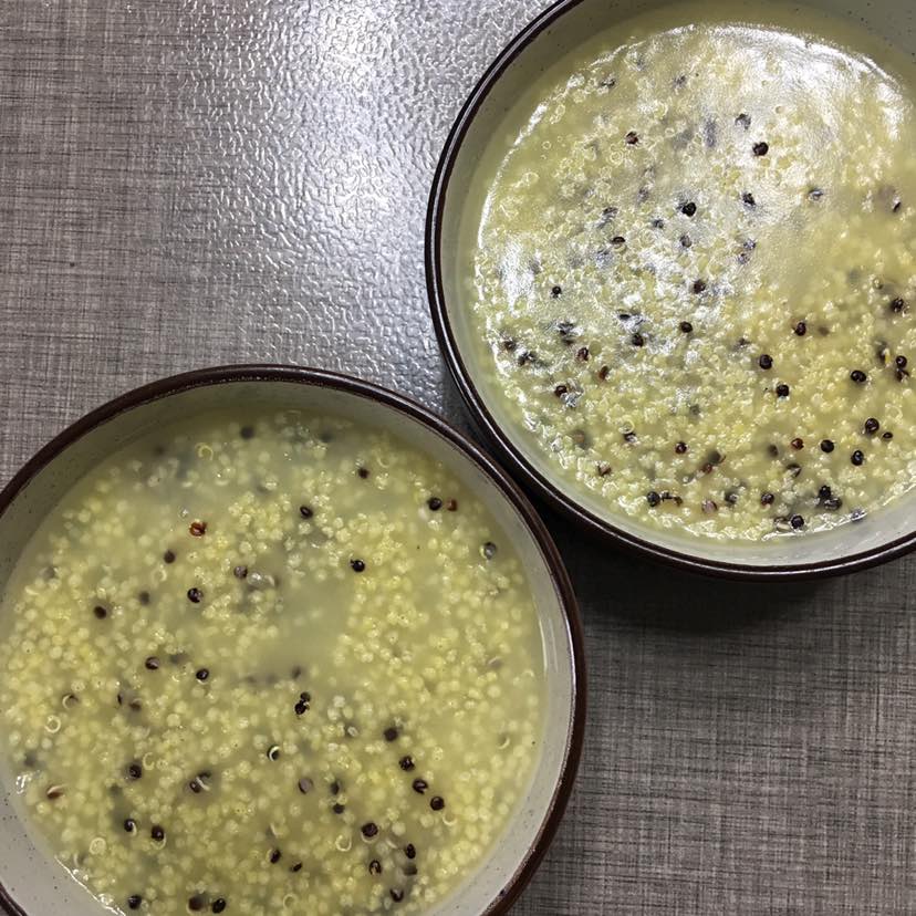 小米粥诱人!肠粉也不错!荤素搭配整了三个菜!真是好!