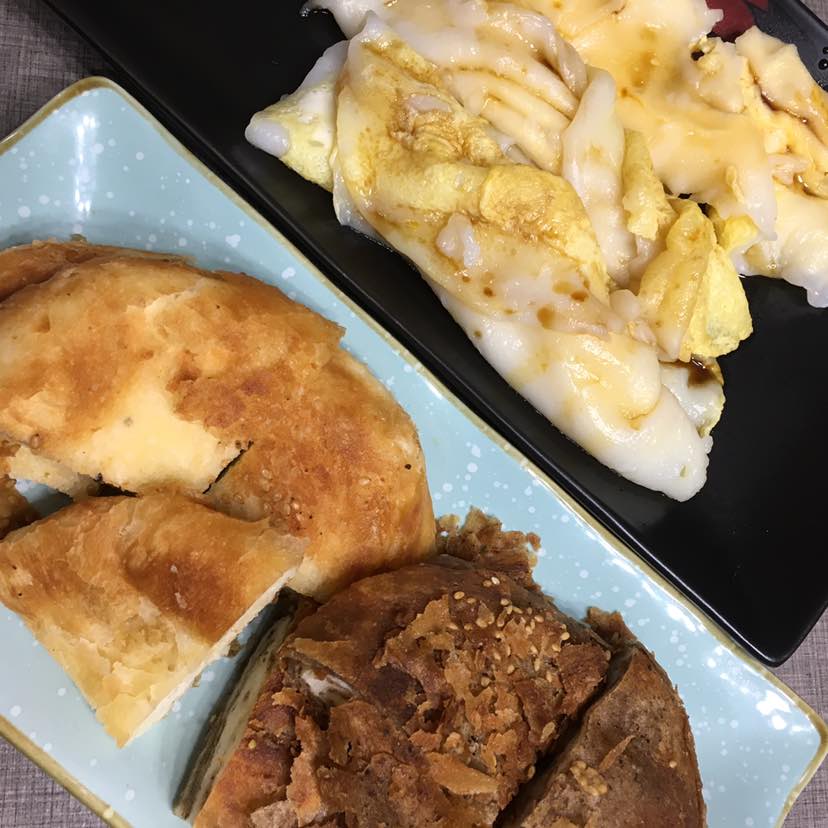 肠粉和麻酱饼,肠粉是我做的。饼是外面买的