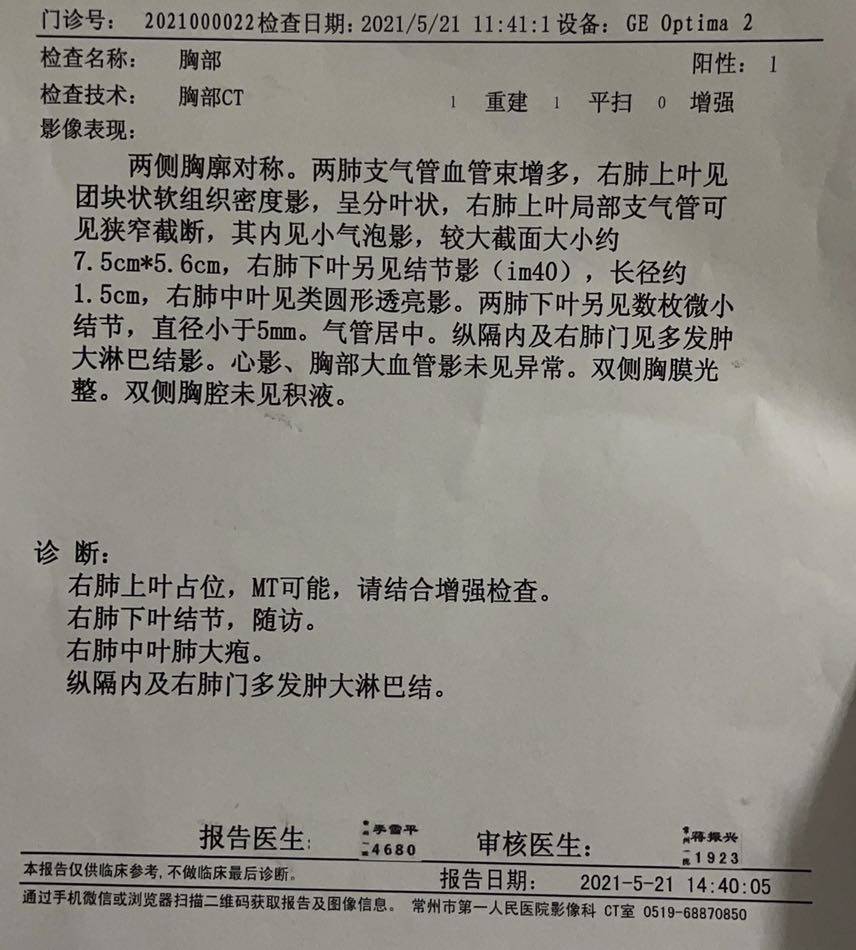 今天结果出来了,看起来好像不是很好,医生讲话也模模糊糊的,说空洞排出来不少,小的哪个看不到了,但是我后面自己看报告,肺门和纵膈淋巴结的都没什么变化,现在肌酐突然高了,本来今天应该第三次免疫药的也用不了了,得先回家吃药看看能不能降下来,哎,心里一直期望能有奇迹,能是好消息,结果出来并不如预期的顺利。