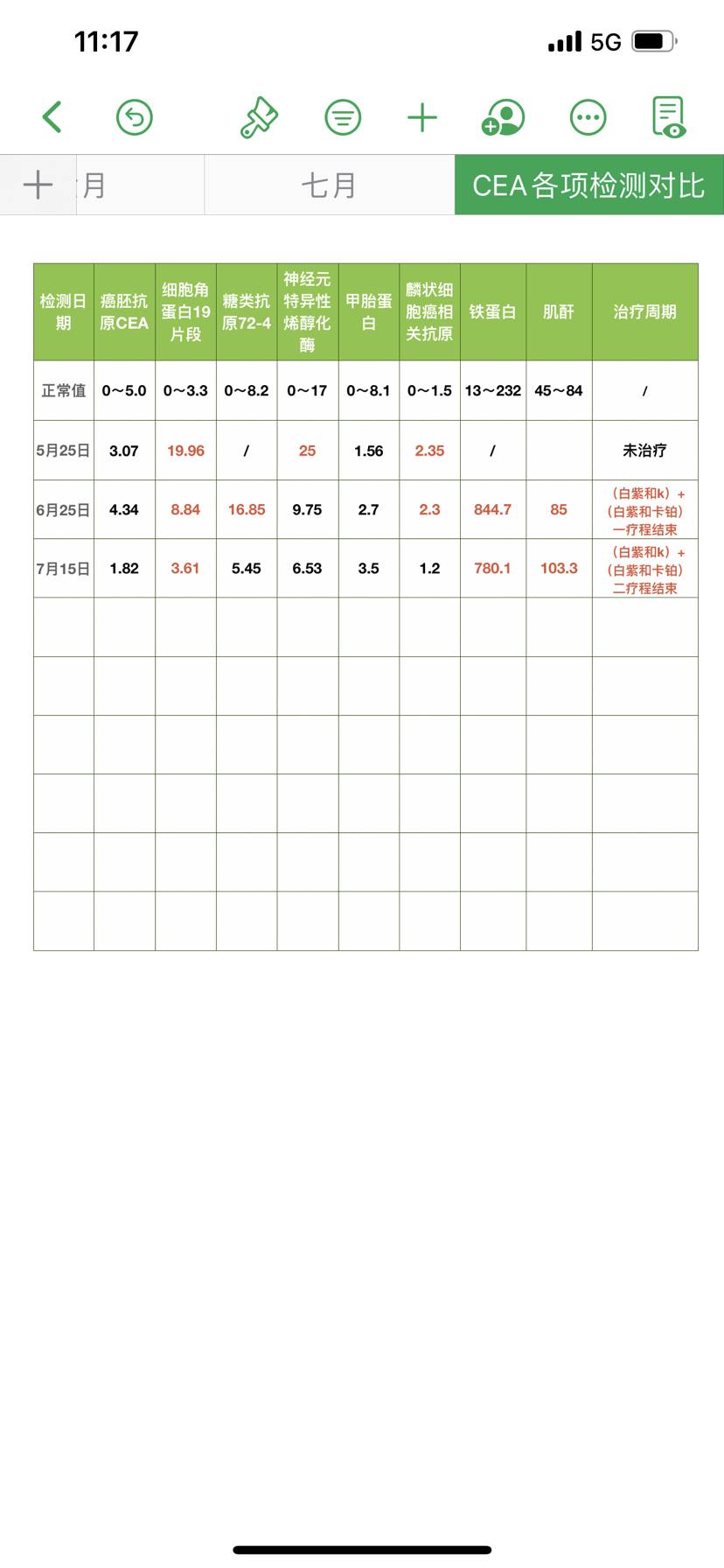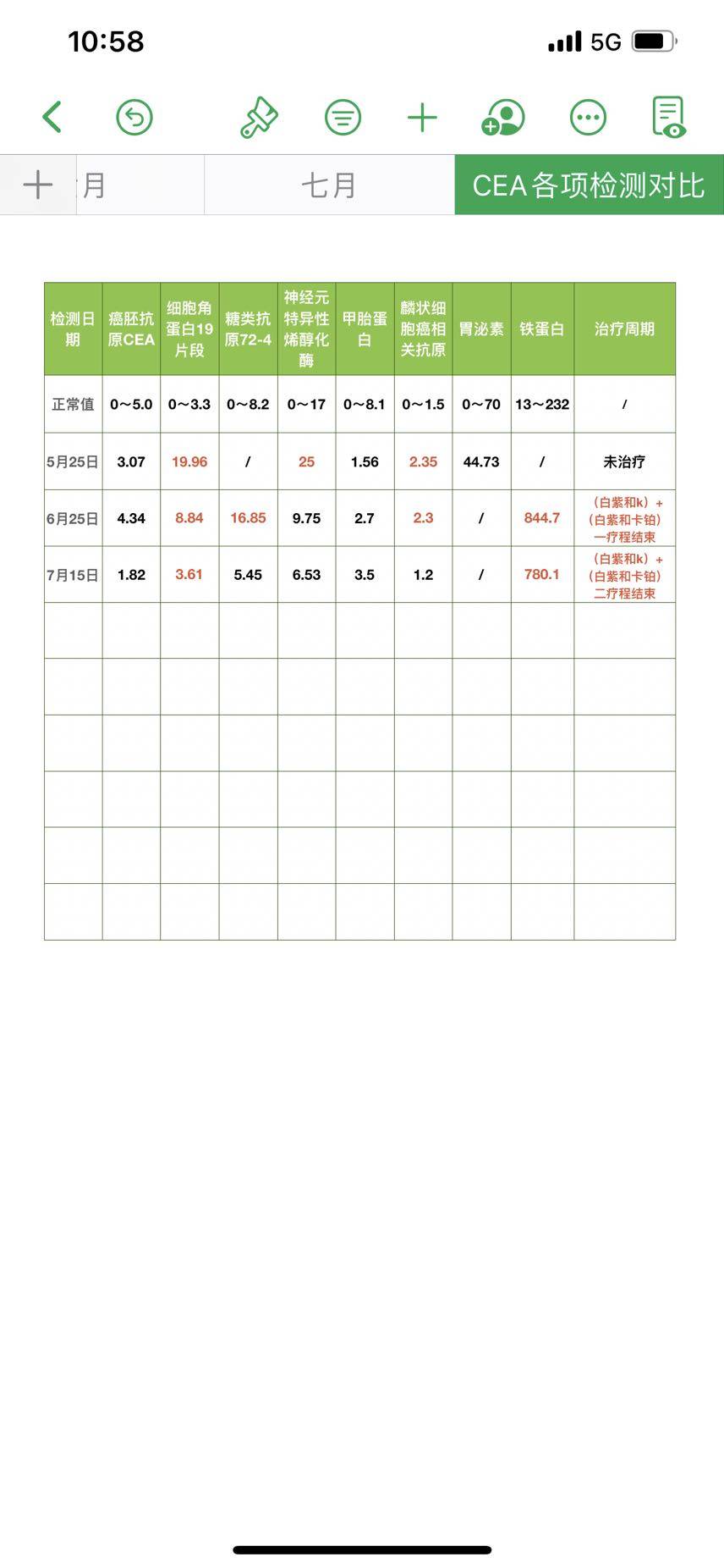一看就是擅长做表的,看了你的,我也学了一下,把我爸的治疗情况指标记录下来了!家属真的不容易,我爸爸发病和你妈时间差不多,我也是独生女,和爸爸感情很好,他从小到大都很宠我,所以之前每天都很痛苦,做梦梦到的都是和他生病治疗那些有关,半夜睡不好,早上醒的早,最近平常缓过来了,一个人想这个事情的时候还是眼泪忍不住就流!