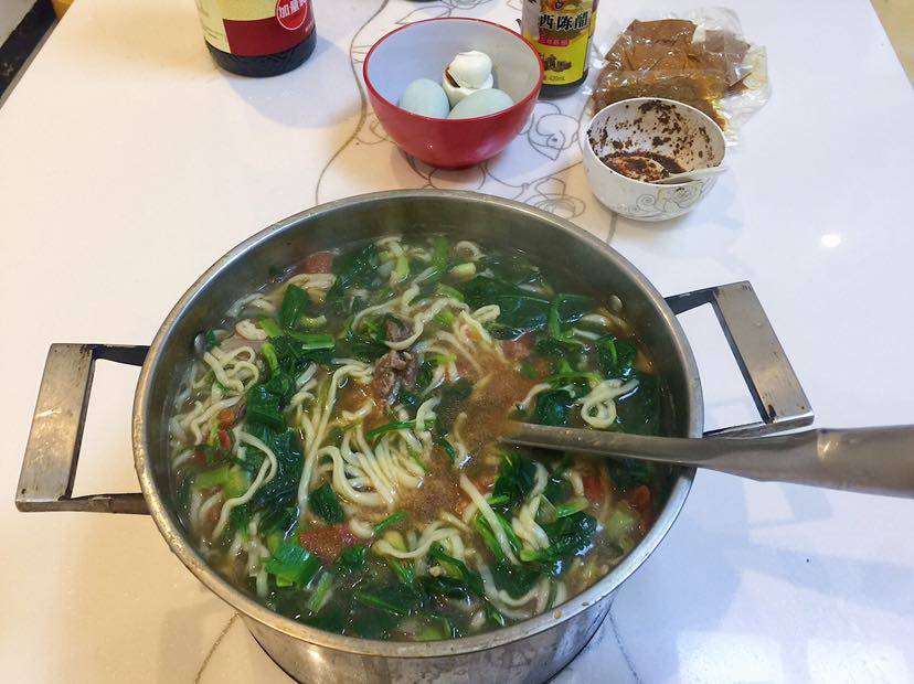 去姐姐家,姐姐做了一大锅面条,针不戳