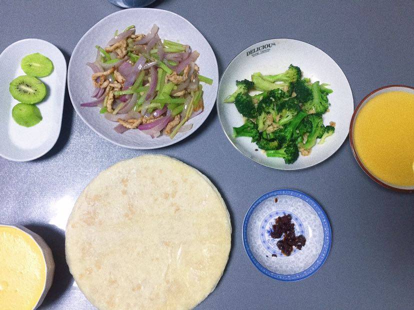 滋补米糊:山药、南瓜、大米、烤腰果🍂蒜蓉西兰花🍁西芹洋葱瘦肉卷饼、香菇牛肉酱、弥🐒🍑!