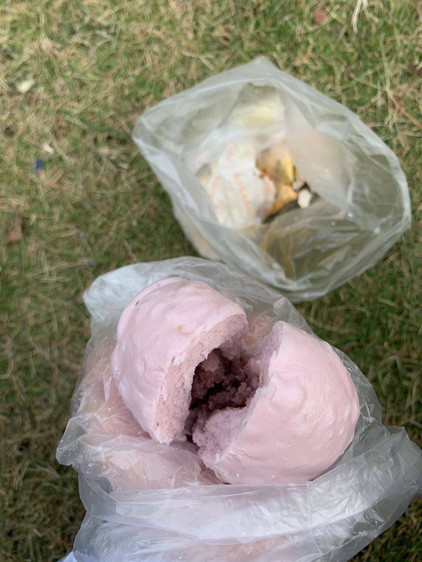 两个鸡蛋白,一个紫薯包,一个奥尔良鸡肉包,感觉吃完还没饱。🤫🤭