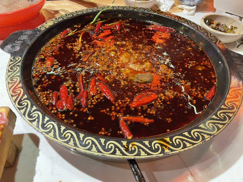 晚上吃重庆火锅。我99年曾有半个月在重庆培训计算机课程,那时候就天天吃重庆火锅,也没吃腻过,以后每次到重庆也是必吃火锅,从来就没失望过,无论是响当当的品牌连锁还是小巷里的不知名小店,没吃到过不好吃的,重庆火锅名不虚传呐!