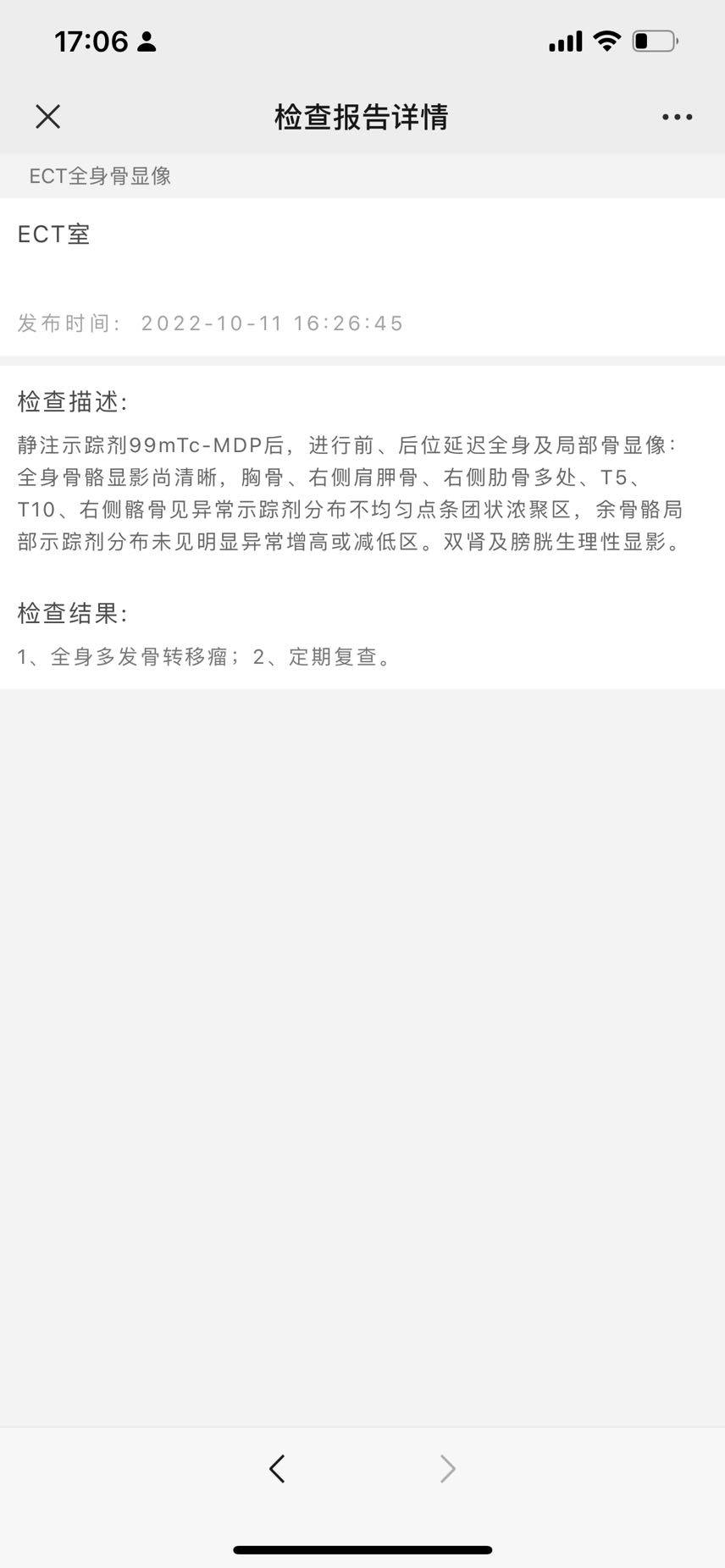 CT未提示骨质破坏 但骨扫描提示多发转移