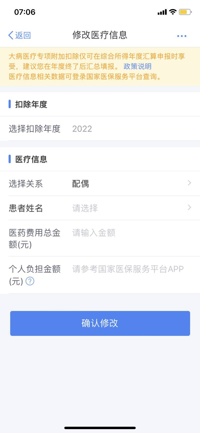 谁懂这个专项扣除怎么选择扣除配偶的税,基本医疗关系应该指的是本人,选择配偶就变成他的医疗信息了,专项扣除页面只能填写。再也找不到其他选择配偶的地方了