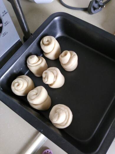 10. 自上而下卷起,收口朝下放入吐司模中。