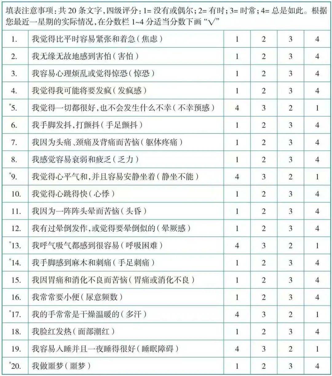 焦虑自评量表(ASA)