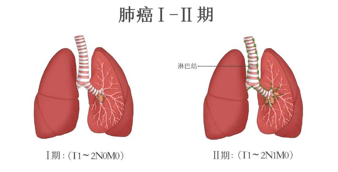 Ⅰ期(ⅠA期、ⅠB期):癌细胞数量少,待在肺部某个地方,还没有到处跑。