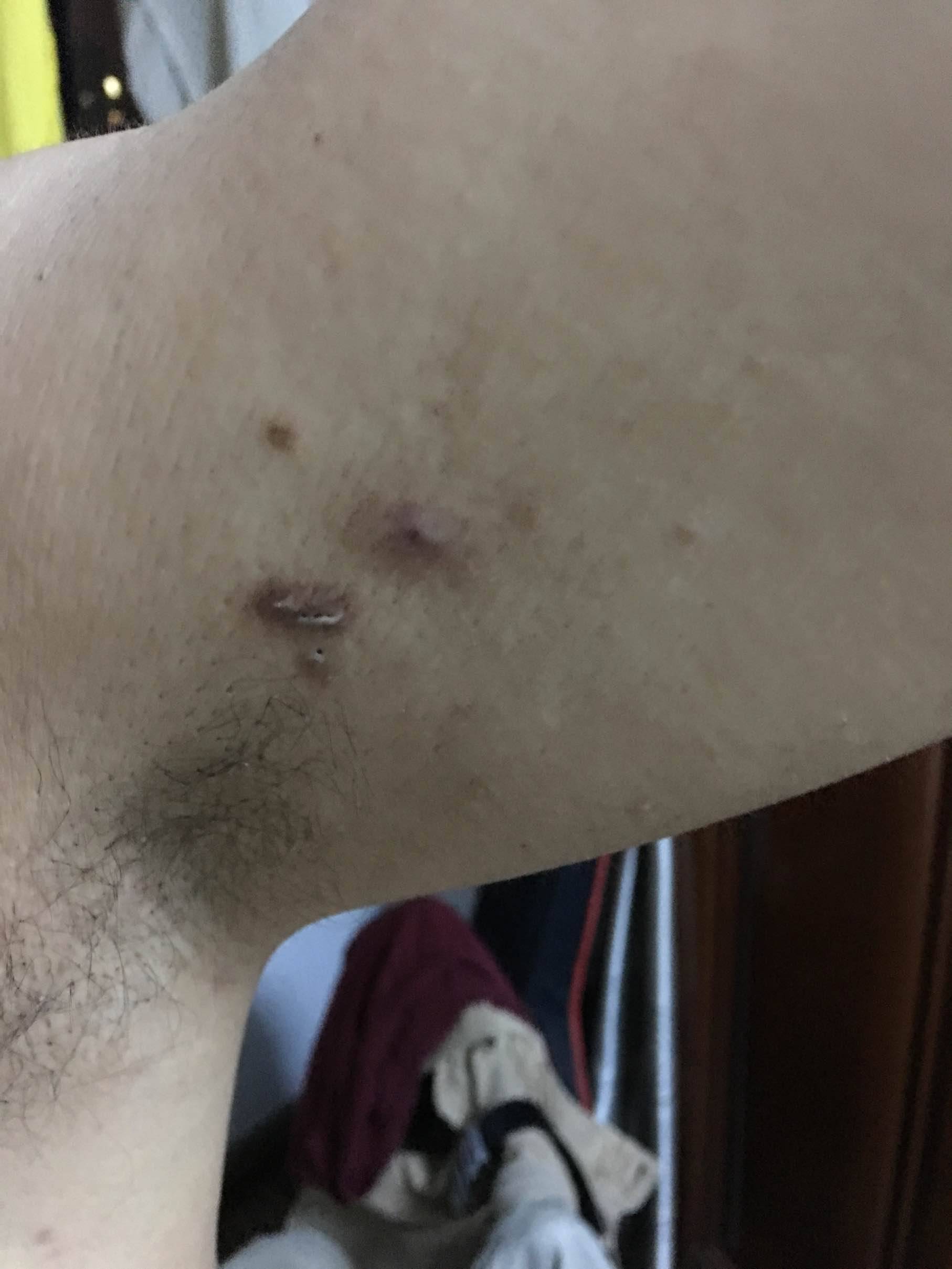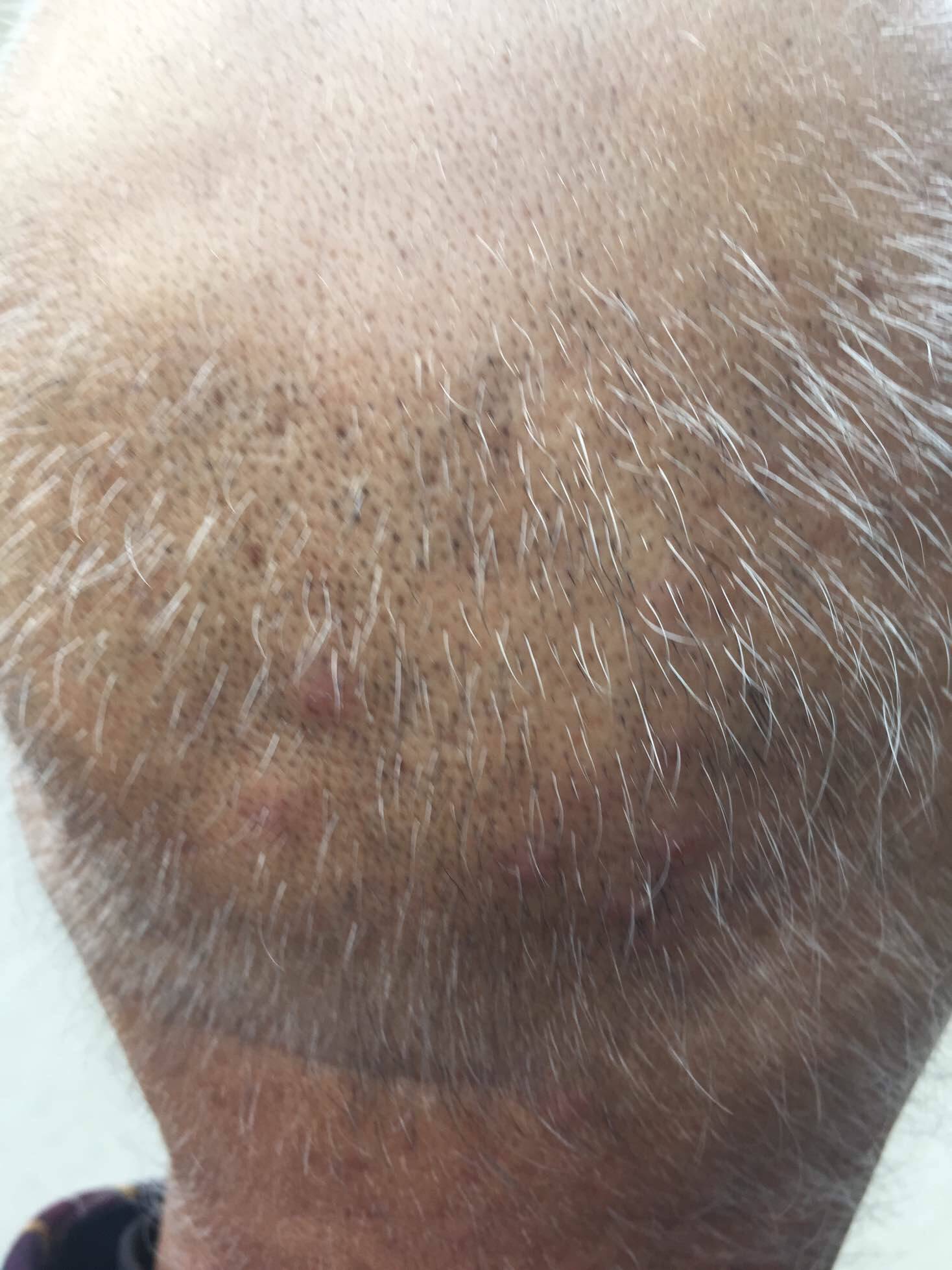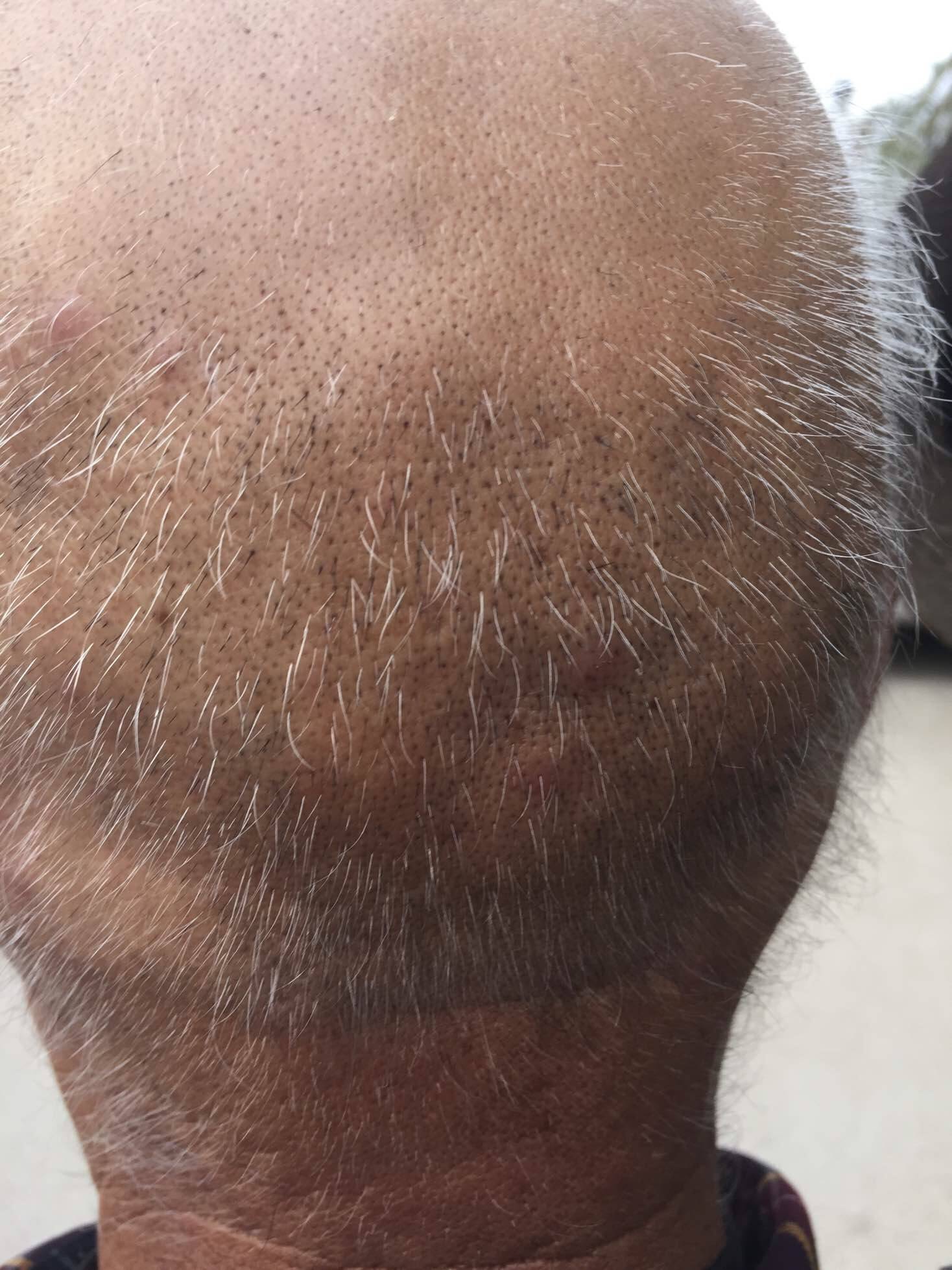 记得3月份刚结束三疗程的化疗时 后脑勺就起痘了,见图。