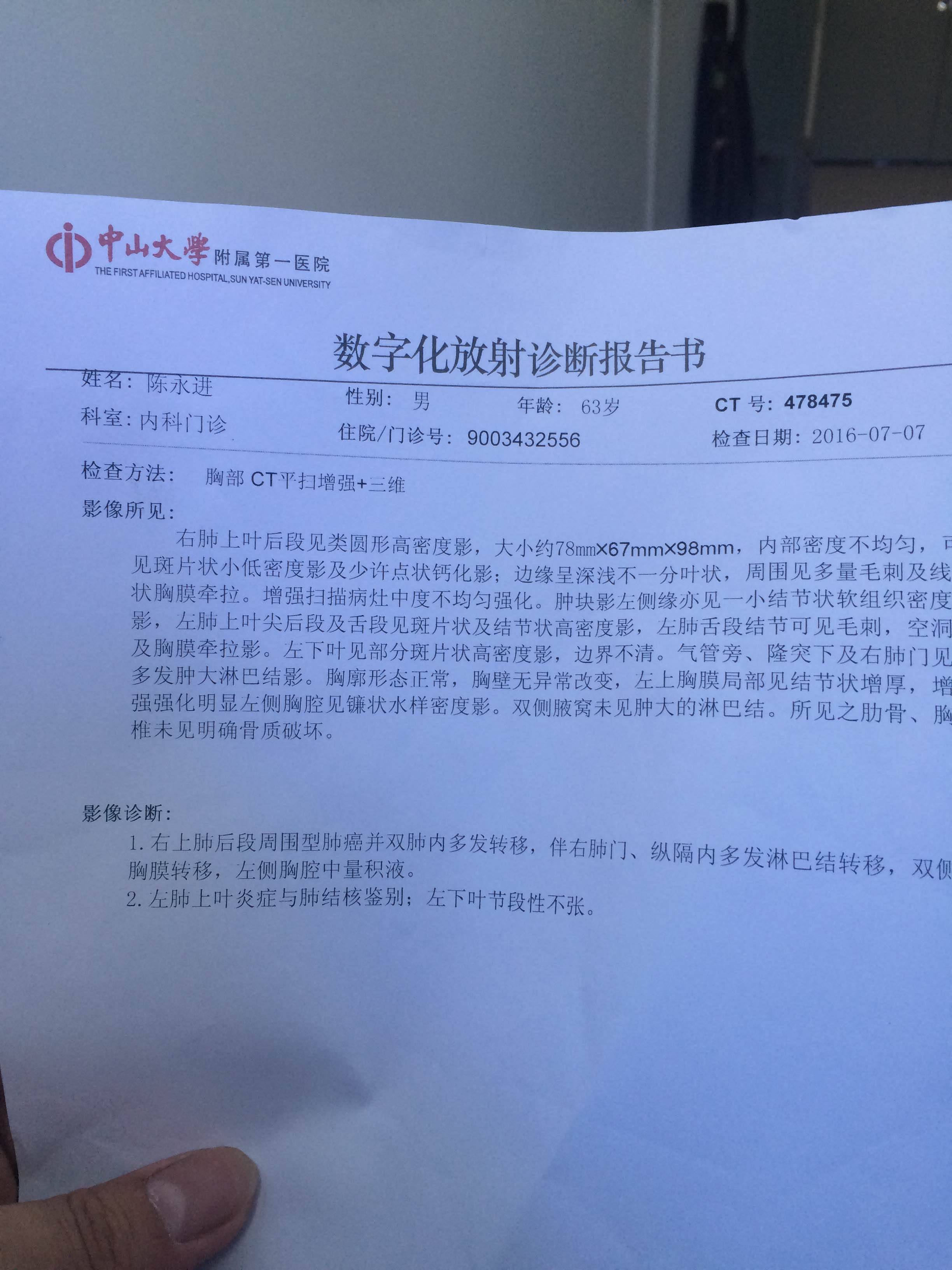 后续应该会让做气管镜,穿刺活检做病理分析确定什么癌,小细胞还是非小细胞(腺癌、鳞癌、大细胞等),然后做基因检测是为了上靶向药。我父亲也刚查出来大夫就按这个流程来的,哎