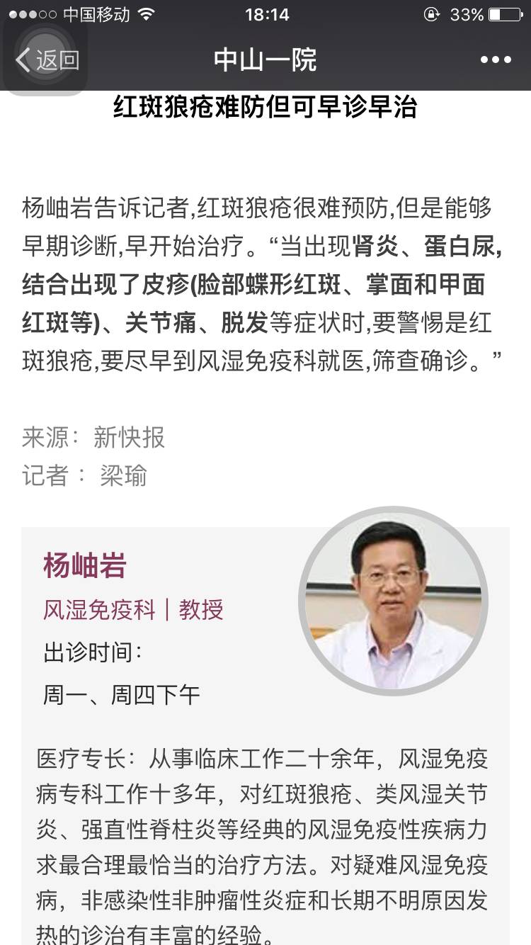 转发 中山一院风湿免疫科 杨岫岩教授的关于SLE怀孕问题