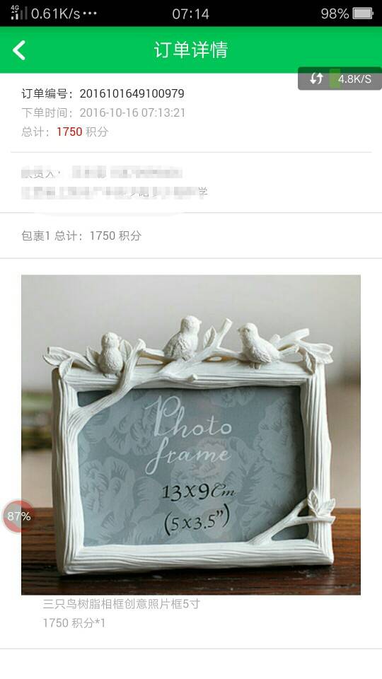 兑换了一个相框,期待中…